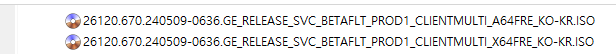 아래 파일은 UUP dump에서 배포하는 스크립트를 이용해서 MS에서 배포하는 파일(ESD, cab파일)로 만든 순수 ISO 파일입니다.