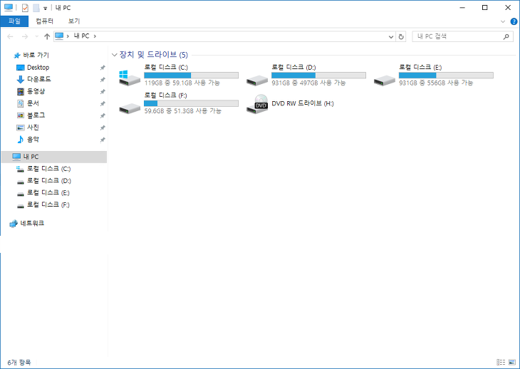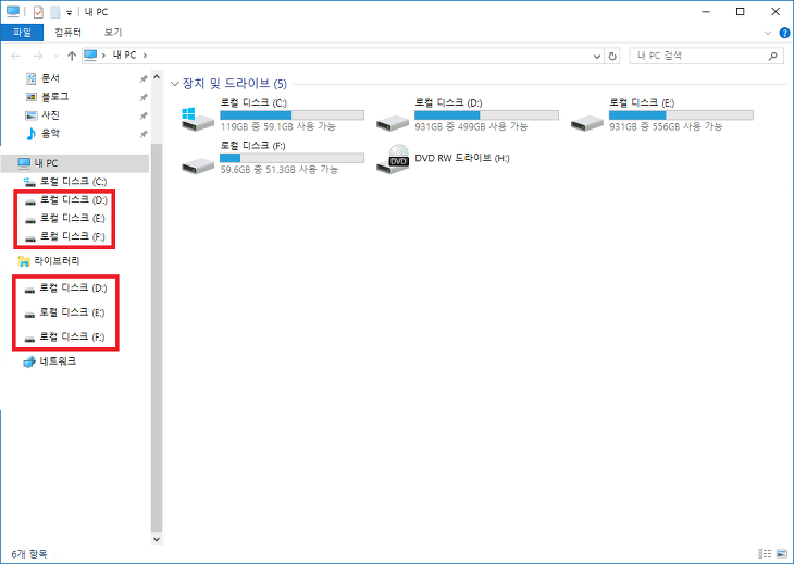 윈도우 10에서는 아래와 같이 탐색기에 드라이브가 중복으로 표시되는 경우가 있습니다.