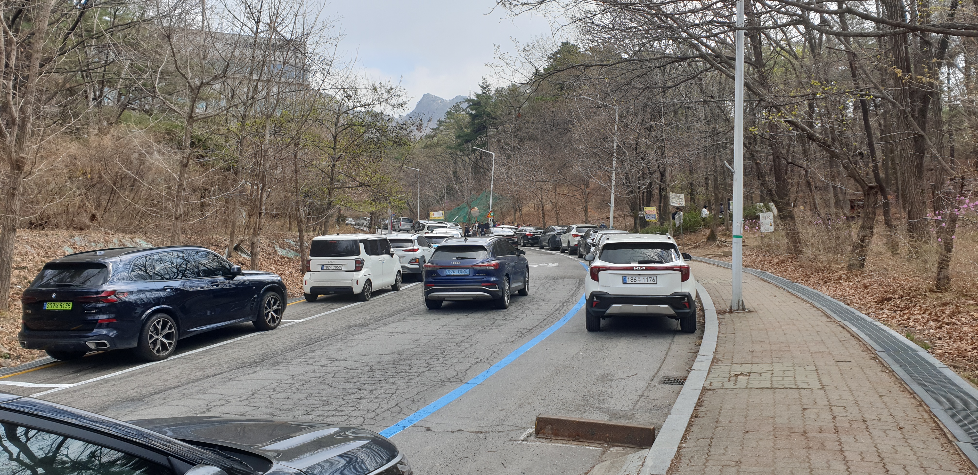 차도 많이 주차되어 있고, 하산한 사람들이 집가기 위해 버스를 기다리고 있습니다...