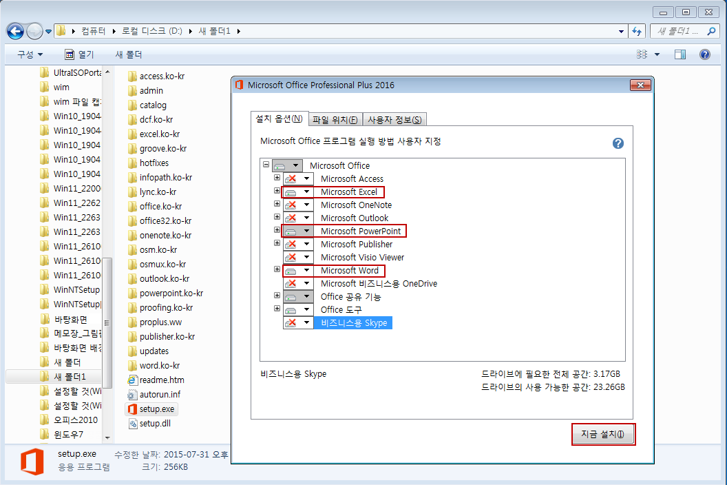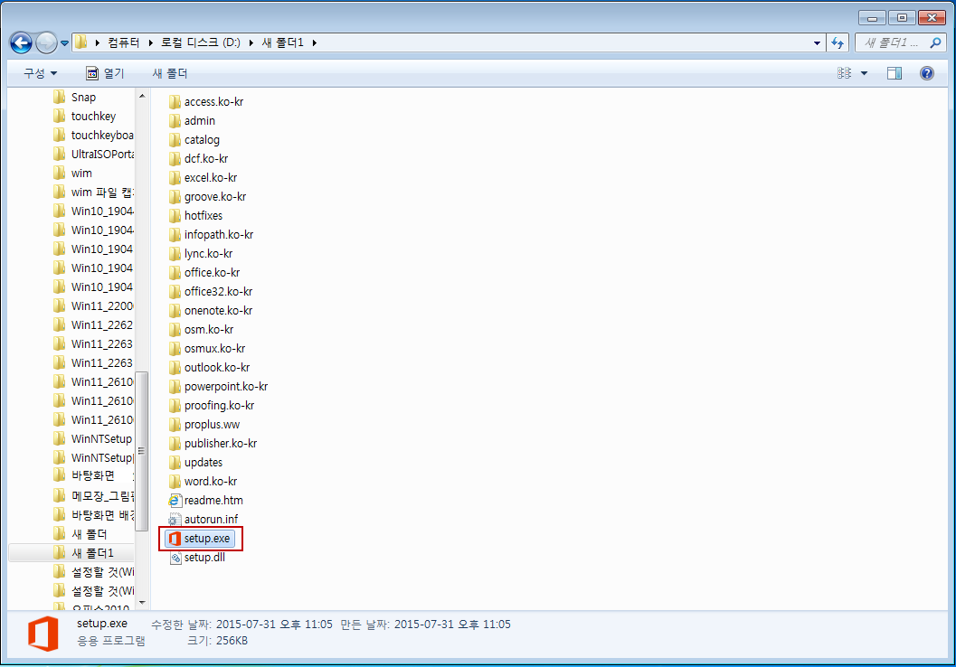 아래 처럼 임의의 폴더에 ISO 파일의 내용물을 전부 풀어두었습니다.