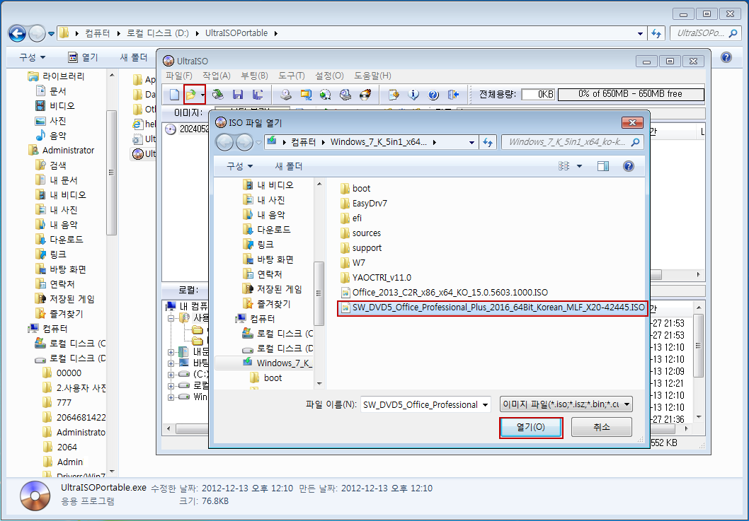 SW_DVD5_Office_Professional_Plus_2016_64Bit_Korean_MLF_X20-42445.ISO 파일을 선택해줍니다.