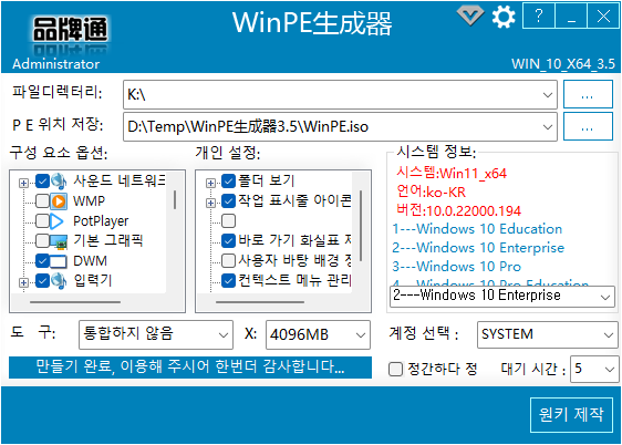 3. WinPE生成器 프로그램으로 저용량 PE 만들기
