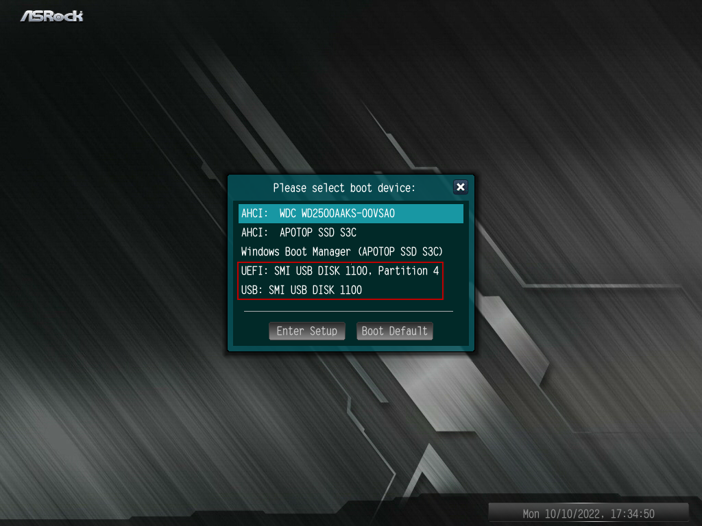 부팅시 F10 연타 → 부팅 순서 USB로 → 엔터