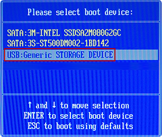 3) 아래 그림과 같이 부팅 메뉴가 나오면 [USB : 모델명]를 선택해주면 됩니다.