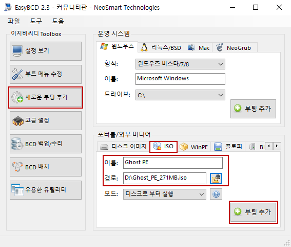 [새로운 부팅 추가] 버튼을 눌러줍니다.