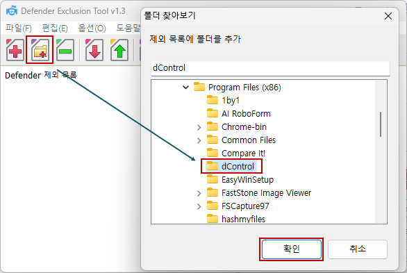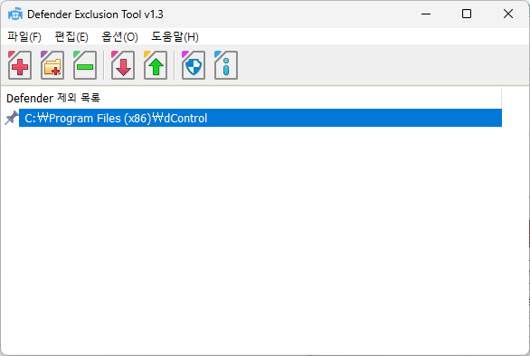 이제 C:\Program Files (x86)\dControl 폴더가 디펜더 검사 항목에서 제외되었습니다.