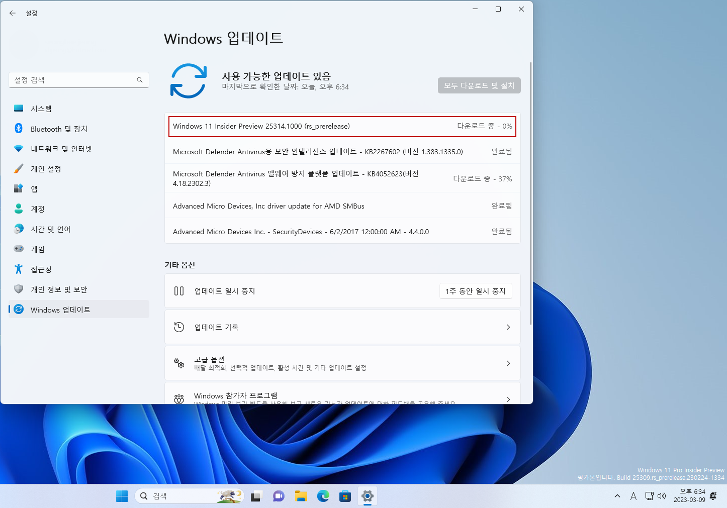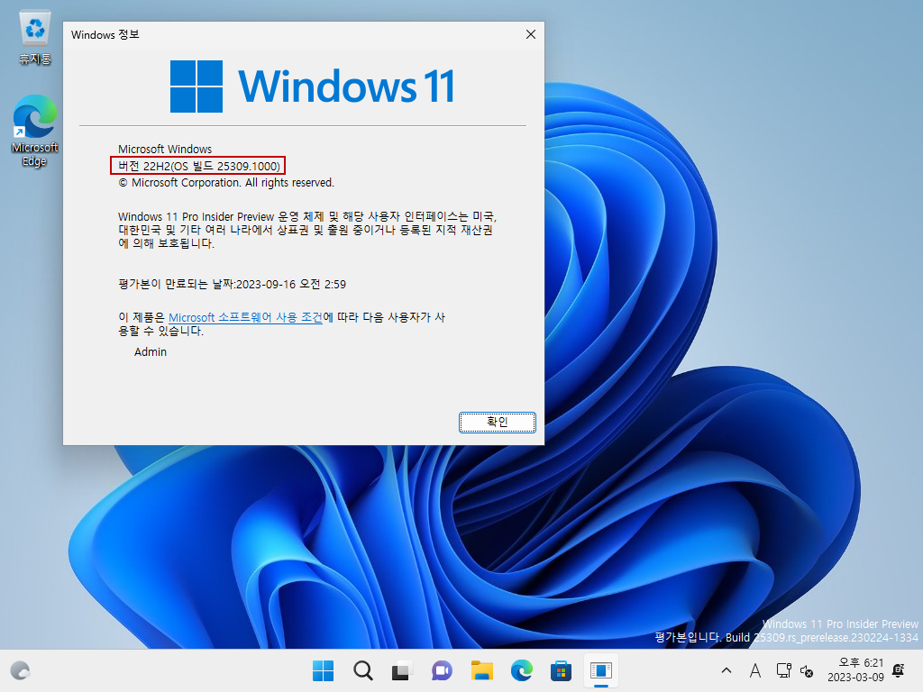 현재 Dev 채널 빌드 25309 입니다.