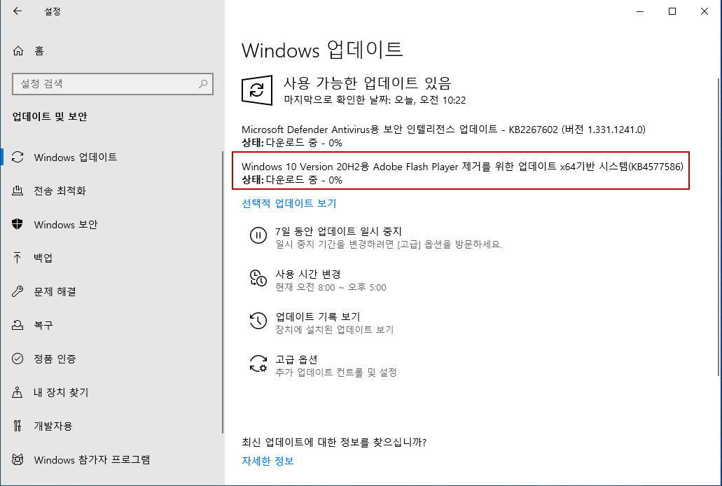Adobe Flash Player 제거를 위한 2020년 10월 27일 업데이트(KB4577586) 다운로드