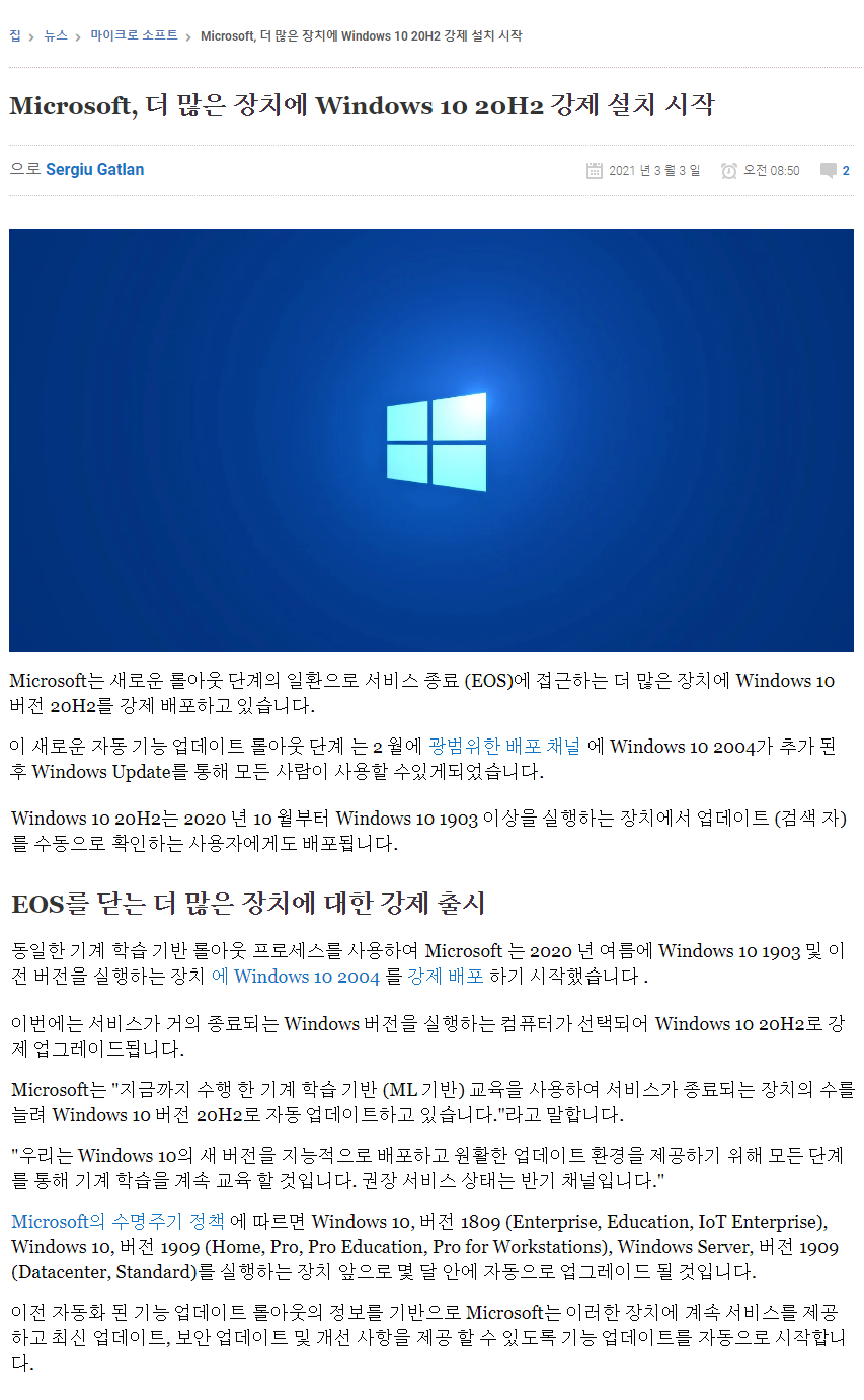 | Windows 10 Enterprise LTSC 버전은 5년 지원으로 변경됨 (6) | 2021.02.23 |