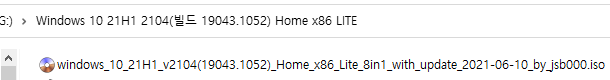 ※ Windows 10, 21H1 버전 2104 [빌드 19043.1052] Home x86 최적화 버전 ※
