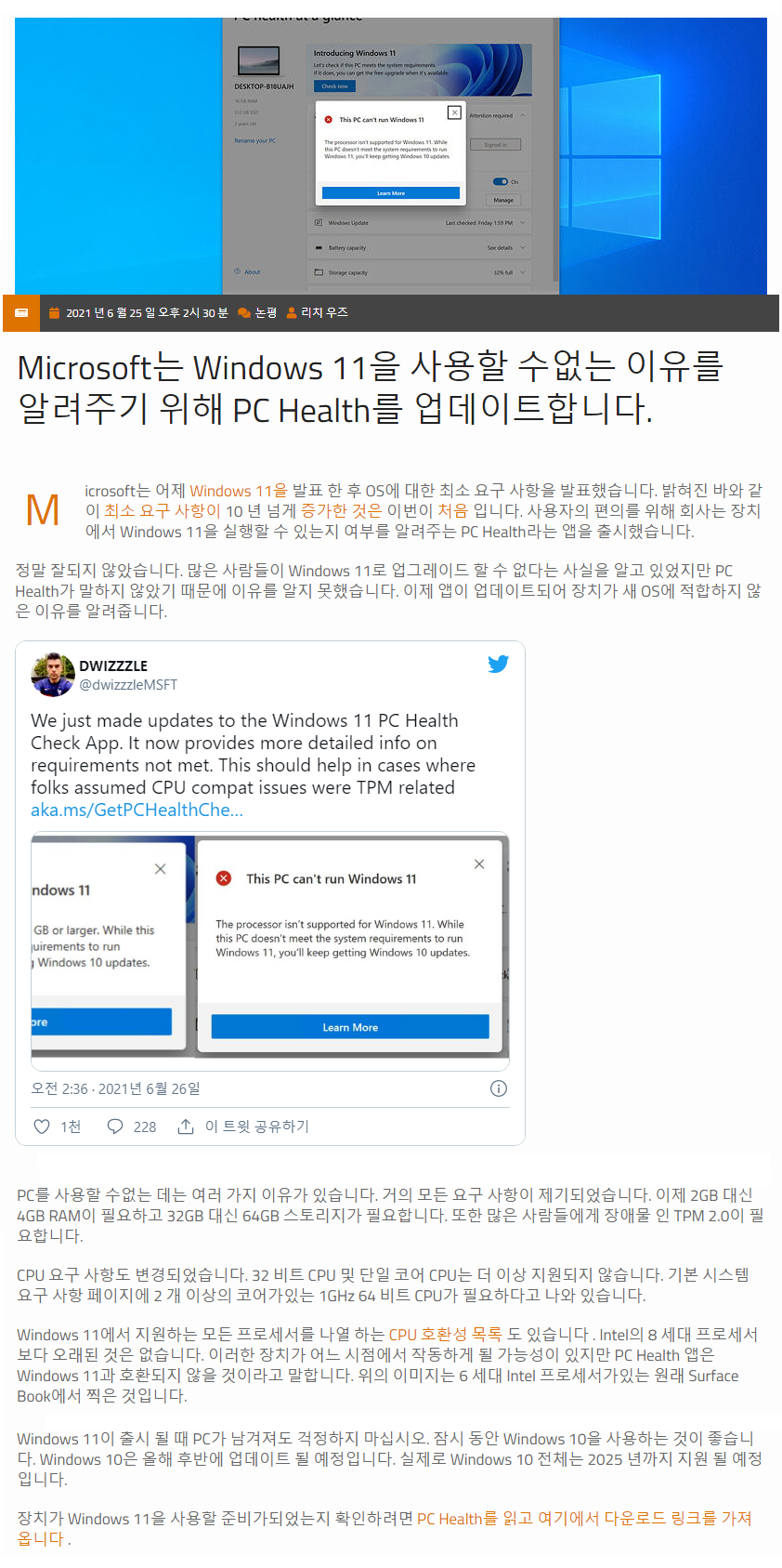 | Windows 11과 호환되는 CPU 목록 (46) | 2021.06.27 |