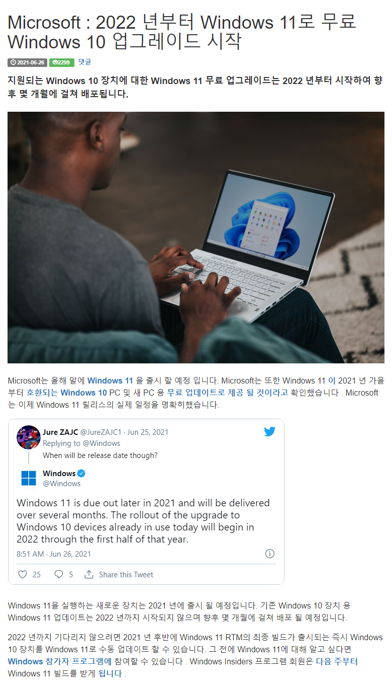 | Windows 11은 Windows 10 보다 확실히 빠릅니다. (30) | 2021.06.25 |