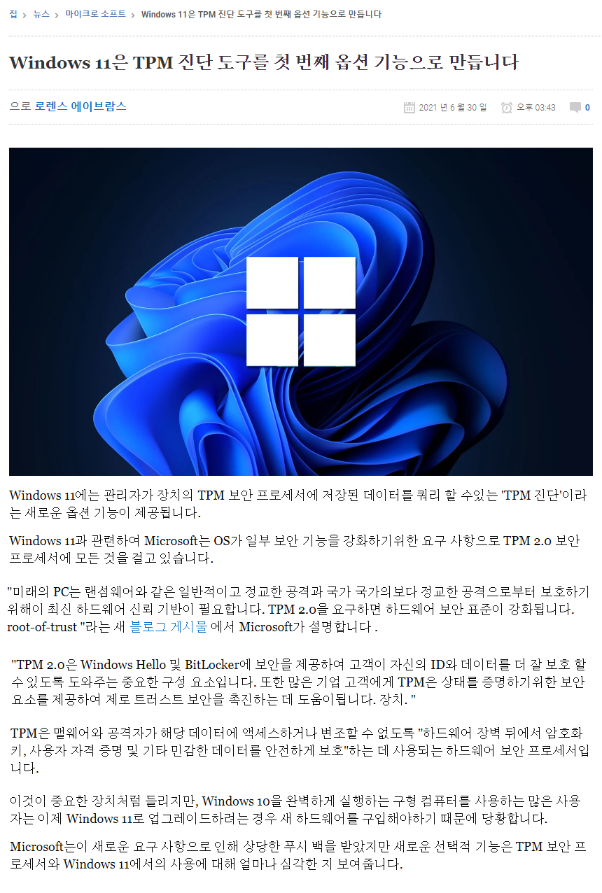 | Windows 11, TPM 2.0을 켜는 방법 (54) | 2021.06.25 |