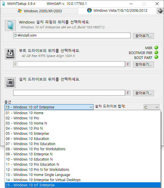 - PE로 부팅하여 WinNTSetup 프로그램으로 윈도우 설치하는 방법
