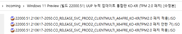위의 압축파일을 풀어서 "uup_download_windows.cmd" 파일을 실행하면 ISO 파일이 만들어집니다 (폴더 이름에 공백이 있으면 안됩니다.)