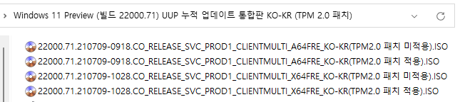 [TPM 2.0 미적용 ISO 파일 직접 만들기] (30분 이상 소요됨) : 시간이 많이 걸리기 때문에 위의 토렌트로 받으시길 바랍니다.ㅠ