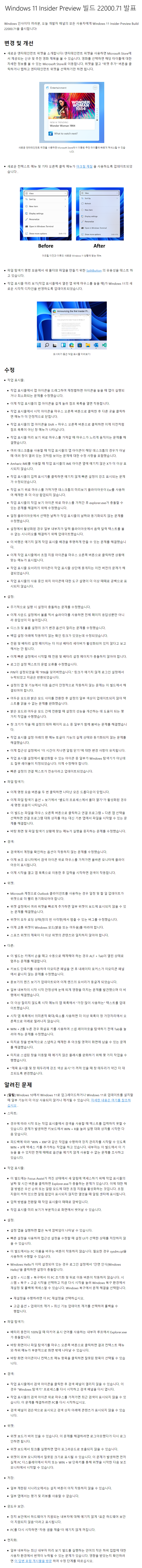 오늘 Windows 11, 22000.71 빌드가 배포되었습니다.