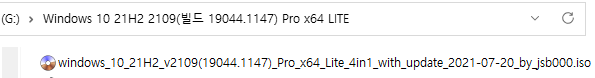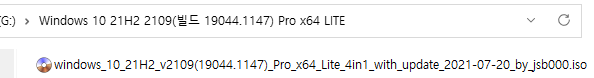 21H1, 버전 2104 (빌드 19043.928) MSDN 순수 파일 + 누적 업데이트(KB5004237) + 21H2 기능 업데이트 패키지(KB5003791) = 19044.1147