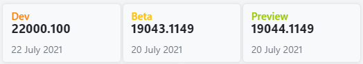 ○ 개발자 채널 [Dev] = Windows 11 : 빌드 22000.100 (= 참가자 빌드)