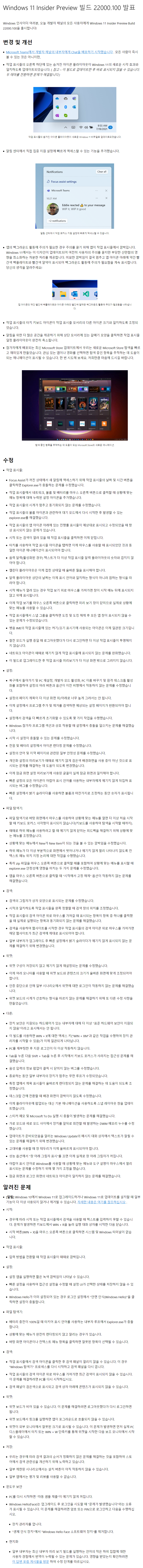 오늘 Windows 11, 22000.100 빌드가 배포되었습니다.