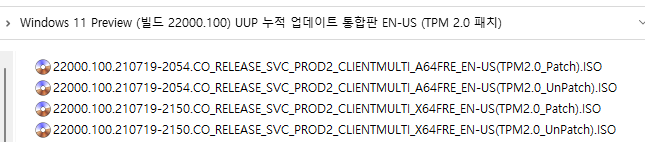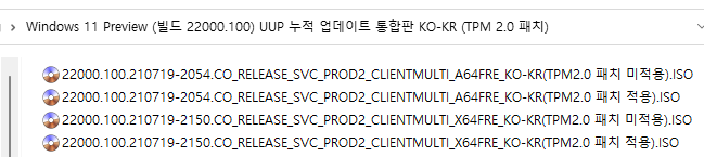 [TPM 2.0 미적용 ISO 파일 직접 만들기] (10~30분 이상 소요됨) : 시간이 많이 걸리기 때문에 위의 토렌트로 받으시길 바랍니다.ㅠ