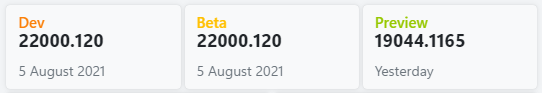 ○ 베타 채널 [Beta] = Windows 11 : 빌드 22000.120 (= 참가자 빌드)