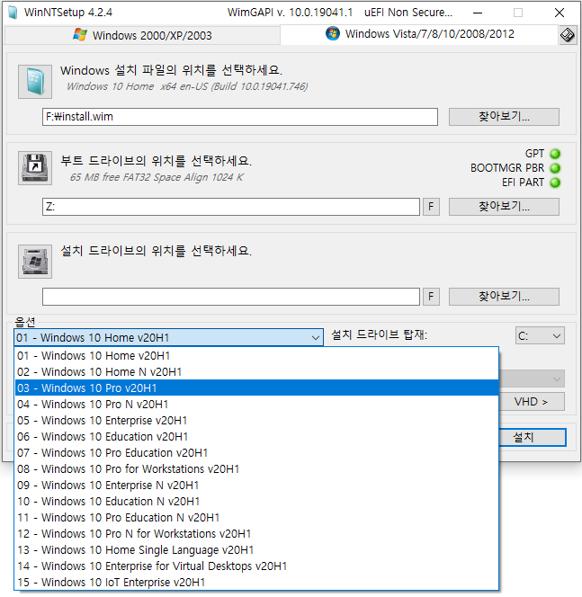 - PE로 부팅하여 WinNTSetup 프로그램으로 윈도우 설치하는 방법