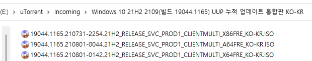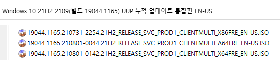 아래 파일은 UUP dump에서 만든 스크립트를 이용해서 MS에서 배포하는 파일(ESD, cab파일)로 만든 순수 ISO 파일입니다.