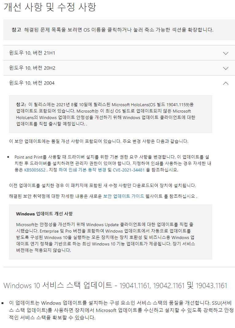 ssu-19041.1161 = 서비스 스택 업데이트 (Servicing Stack Update : SSU) (누적업데이트 설치 준비 파일) (2021-08-10)