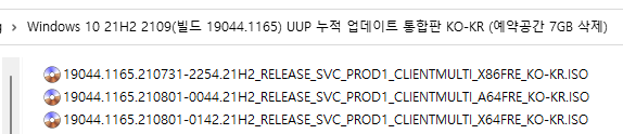 2) 예약공간 7GB 삭제 패치가 적용된 버전 (예약공간 7GB 삭제 패치 + 21H2용 탐색기 아이콘 변경을 적용.ㅎ 권장)