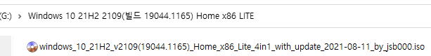 ※ Windows 10, 21H2 버전 2109 [빌드 19044.1151] Pro x64 / Home x86 최적화 버전 ※