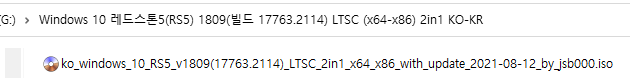 파일명 : ko_windows_10_RS5_v1809(17763.1697)_LTSC_2in1_x64_x86_with_update_2021-01-13_by_jsb000.iso 7.12 GB다운로드 : 링크 1) https://drive.google.com/drive/folders/1XjdoWOr7GFAPr_ieB_vB4tDyVE38L5lv?usp=sharing