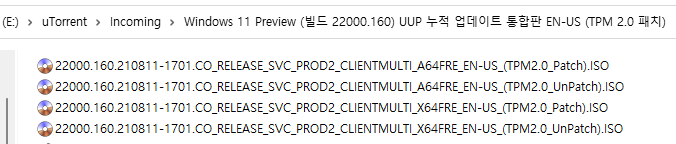 [TPM 2.0 미적용 ISO 파일 직접 만들기] (10~30분 이상 소요됨) : 시간이 많이 걸리기 때문에 위의 토렌트로 받으시길 바랍니다.ㅠ