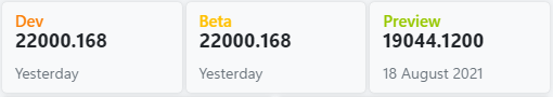 ○ 개발자 채널 [Dev] = Windows 11 : 빌드 22000.168 (= 참가자 빌드)