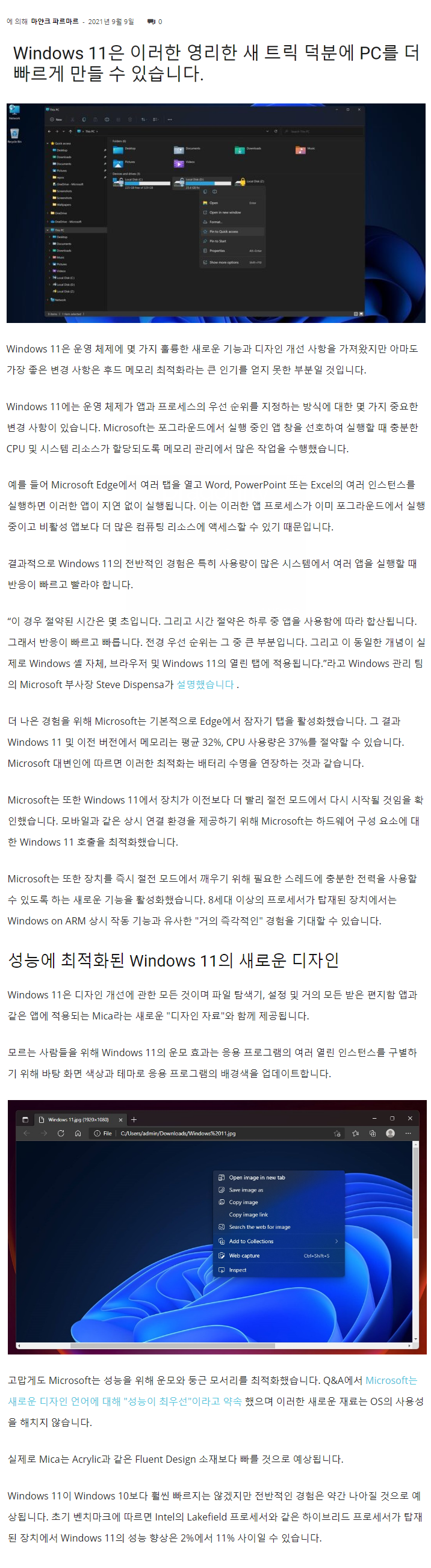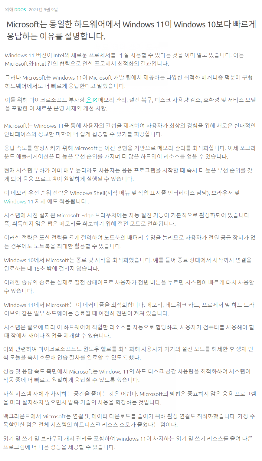 알게 모르게 저도 느끼는 거지만.... 체감상 Windows 11이 조금 더 빠른 것 같습니다..ㅎㅎ
