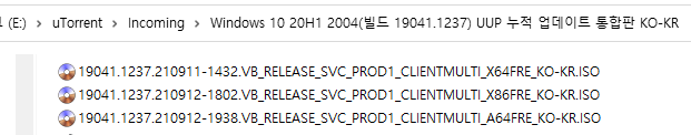 아래 파일은 UUP dump에서 만든 스크립트를 이용해서 MS에서 배포하는 파일(ESD, cab파일)로 만든 순수 ISO 파일입니다.