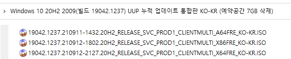 2) 예약공간 7GB 삭제 패치가 적용된 버전 (예약공간 7GB 삭제 패치 + 21H2의 탐색기 아이콘 변경 적용.ㅎ 권장)