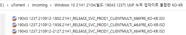 아래 파일은 UUP dump에서 만든 스크립트를 이용해서 MS에서 배포하는 파일(ESD, cab파일)로 만든 순수 ISO 파일입니다.