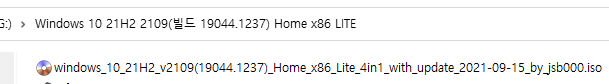 ※ Windows 10, 21H2 버전 2109 [빌드 19044.1237] Pro x64 / Home x86 최적화 버전 ※