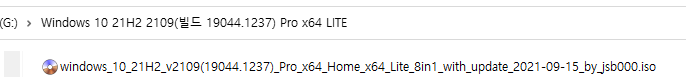 21H1, 버전 2104 (빌드 19043.928) MSDN 순수 파일 + 누적 업데이트(KB5005565) + 21H2 기능 업데이트 패키지(KB5003791) = 19044.1237