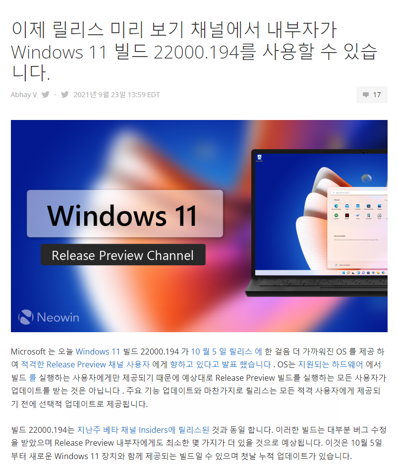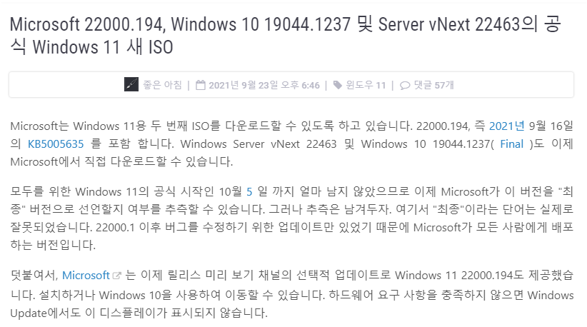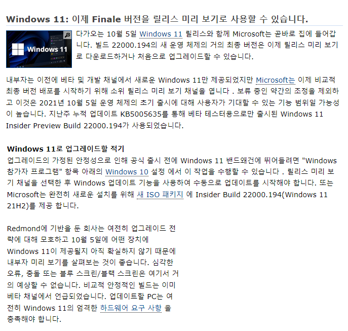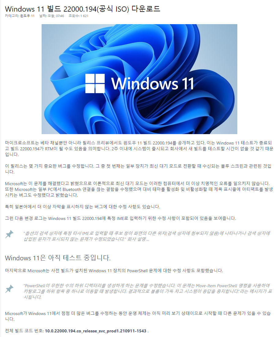 Windows 11, 21H2 Insider Preview 빌드 22000.194 배포됨 [한글/영문판] ■ ■ ■