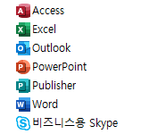 Access, Excel, Outlook, Powerpoint, publisher, Word, Skype 등이 설치됩니다.