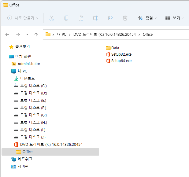x86 / x64 버전을 선택 설치하시려면 Office 폴더로 이동하여 선택 설치하세요.