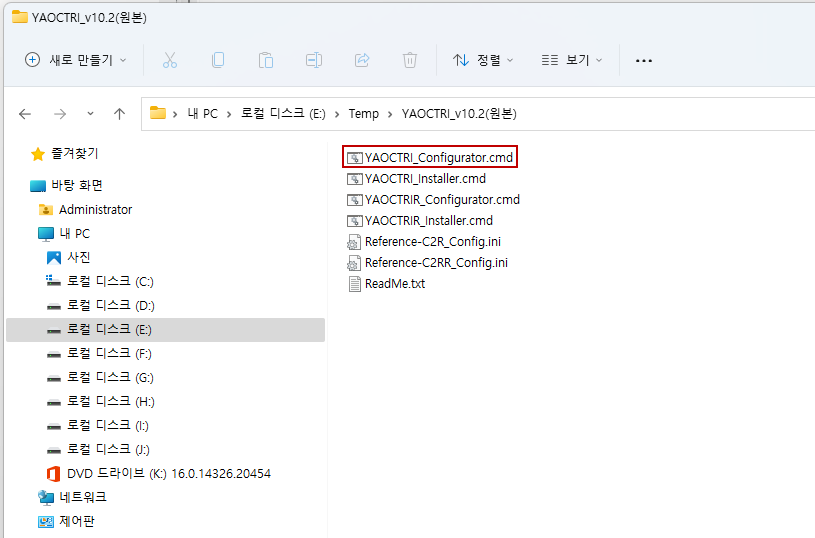 1) YAOCTRI_v10.7.zip 파일을 압축 풀어서 YAOCTRI_Configurator.cmd파일을 실행시켜 볼륨판 설치 설정파일을 만들어줍니다.