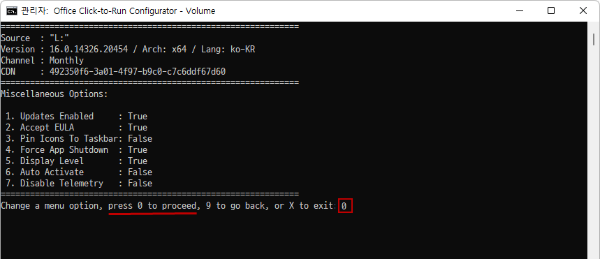 7) 기본값으로 설치합니다. 따라서, 0을 눌러줍니다.