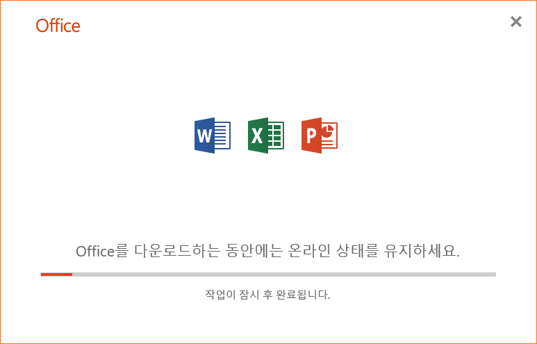 10) 이제 Office 2019가 자동으로 설치됩니다. (Excel, PowerPoint, Word 만 설치됨)