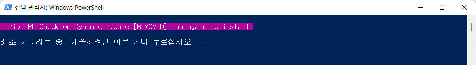 1) Skip_TPM_Check_on_Dynamic_Update_v2.cmd 파일 먼저 실행 → 녹색 메시지 창 확인