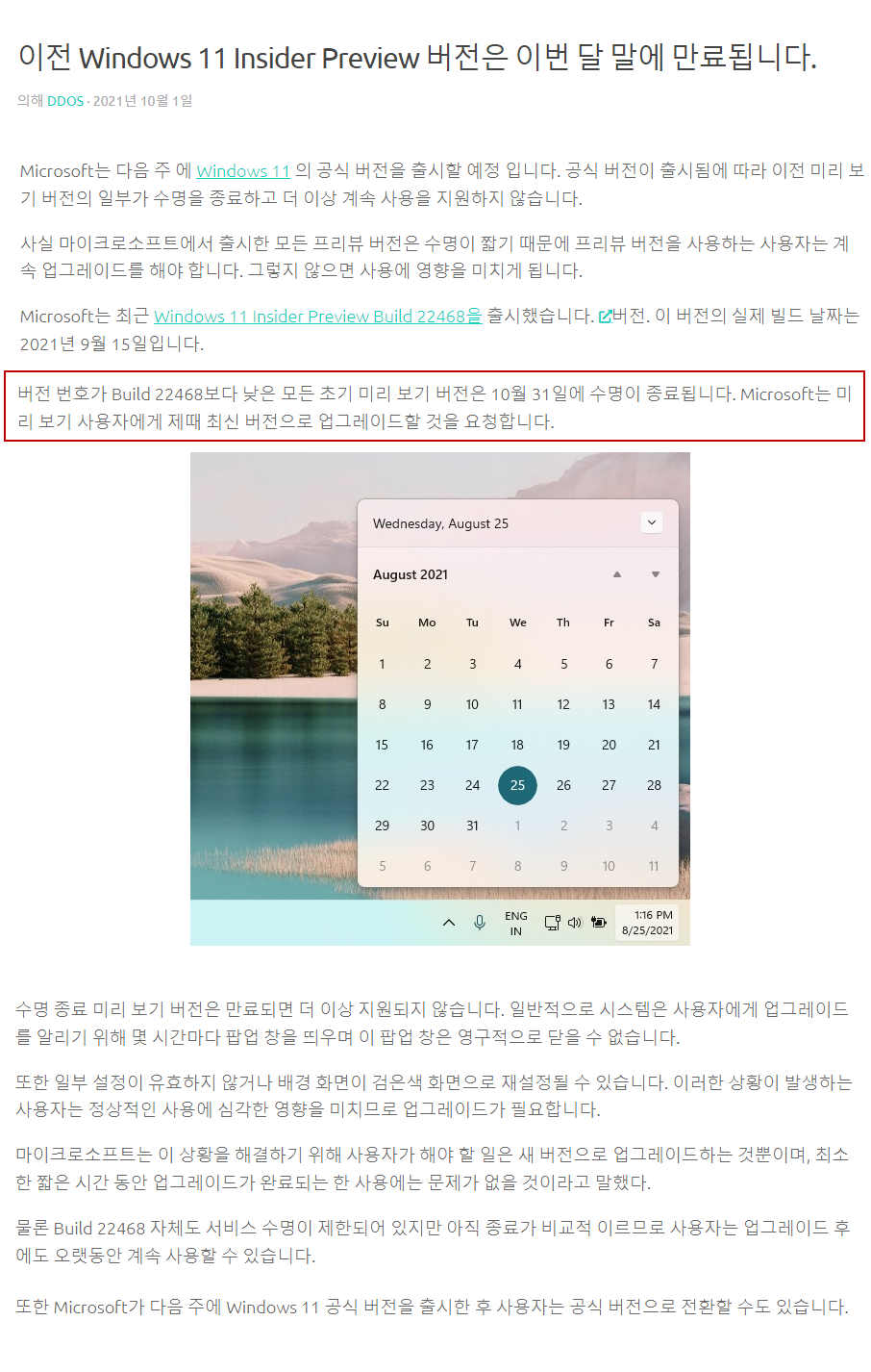 Beta / Release Preview 채널 참가자는 이번달 31일로 참가자가 만료된다고 합니다...