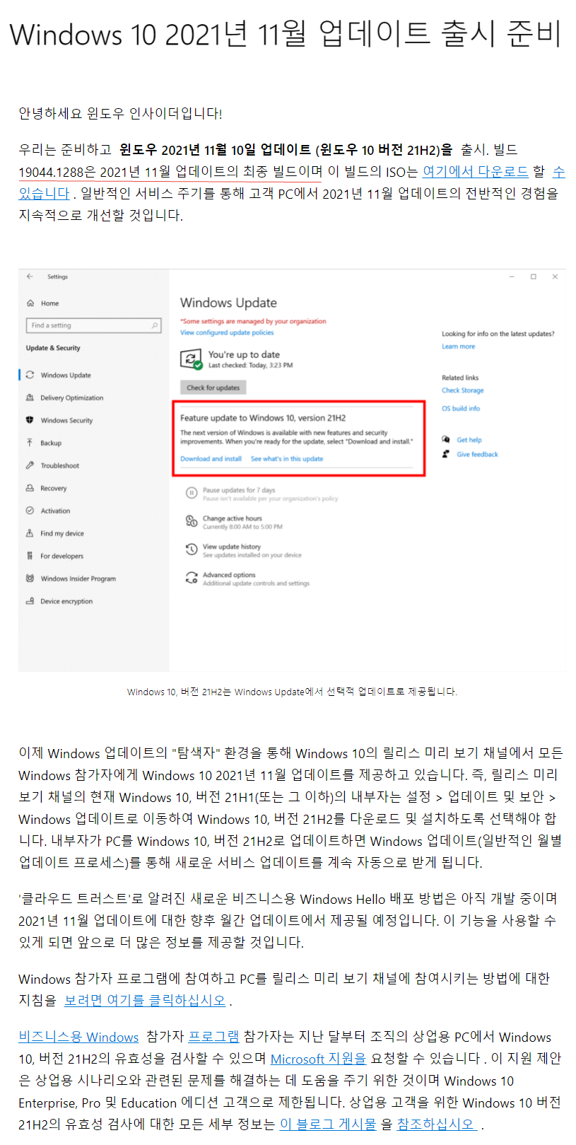 출처 : Preparing the Windows 10 November 2021 Update for Release | Windows Insider Blog