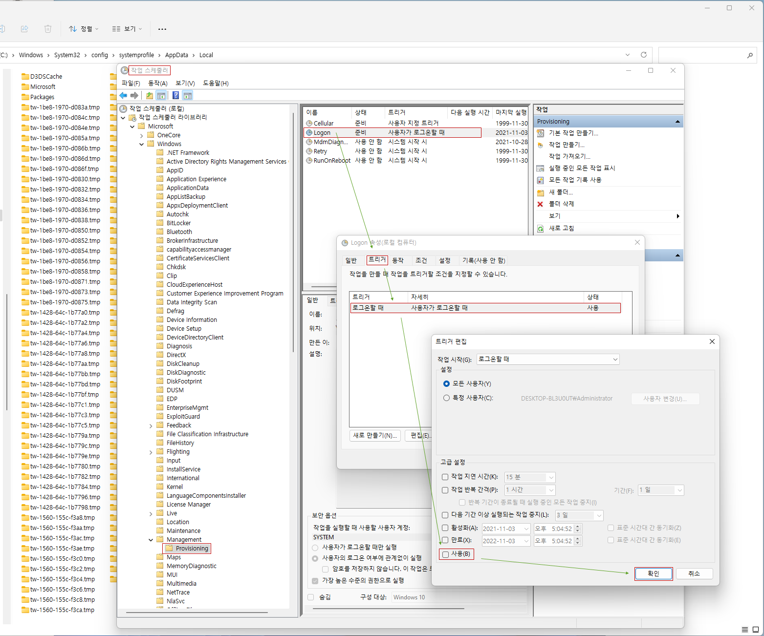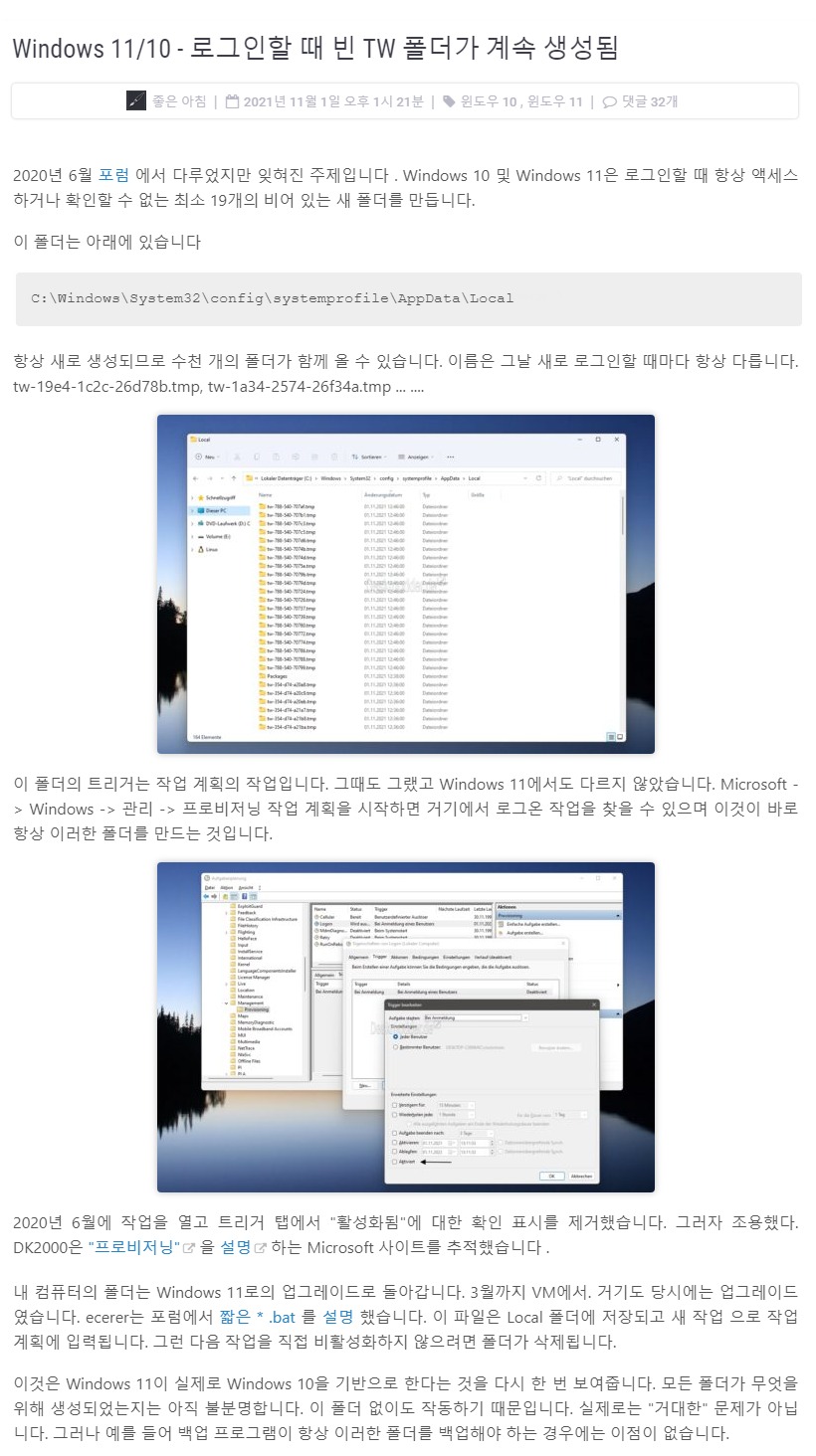 방법1) 작업스케줄러에서 TW 폴더 생성 방지 ( 실행이나 파워쉘에서 실행해주세요)